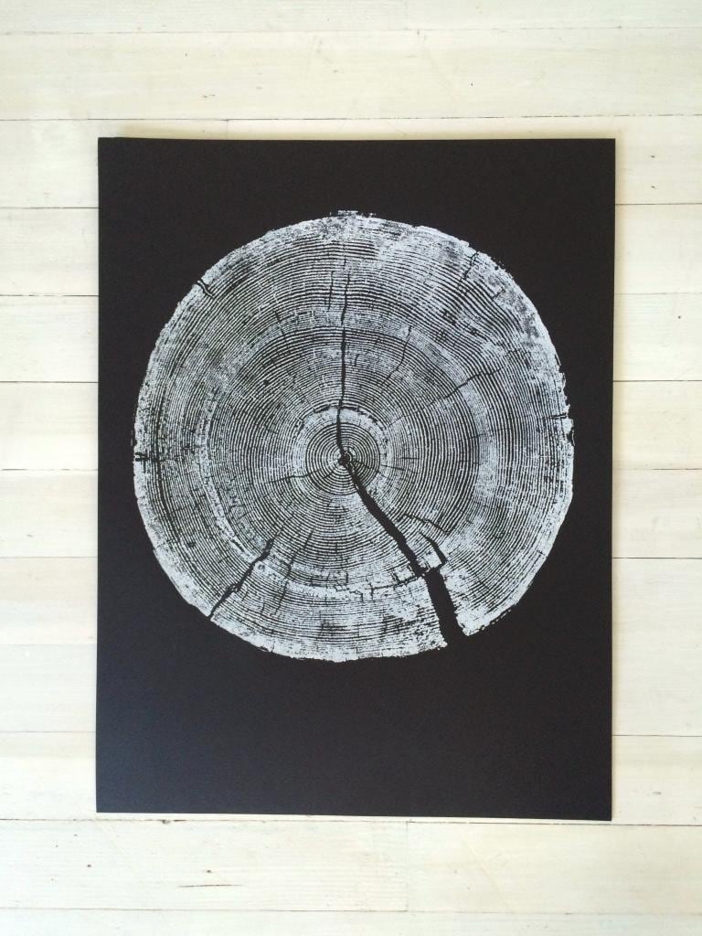 Tree ring print from Rock Canyon, Utah. Pine tree printed by hand on 18x24 inch paper.