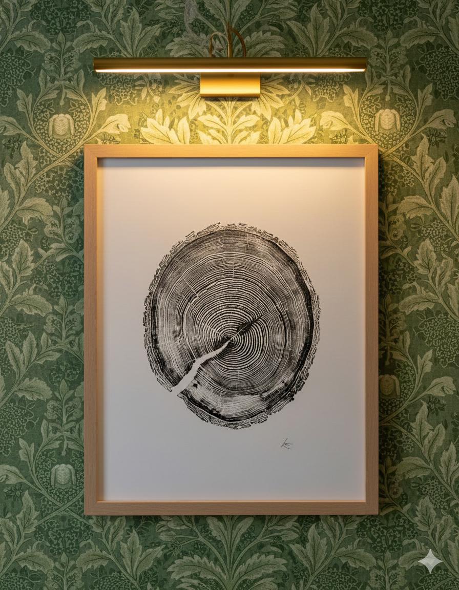 Hand-printed using a traditional woodcut process, this artwork preserves the fine grain, subtle textures, and natural geometry unique to White Pine. No two impressions are ever identical, making this a signed, one-of-a-kind original.