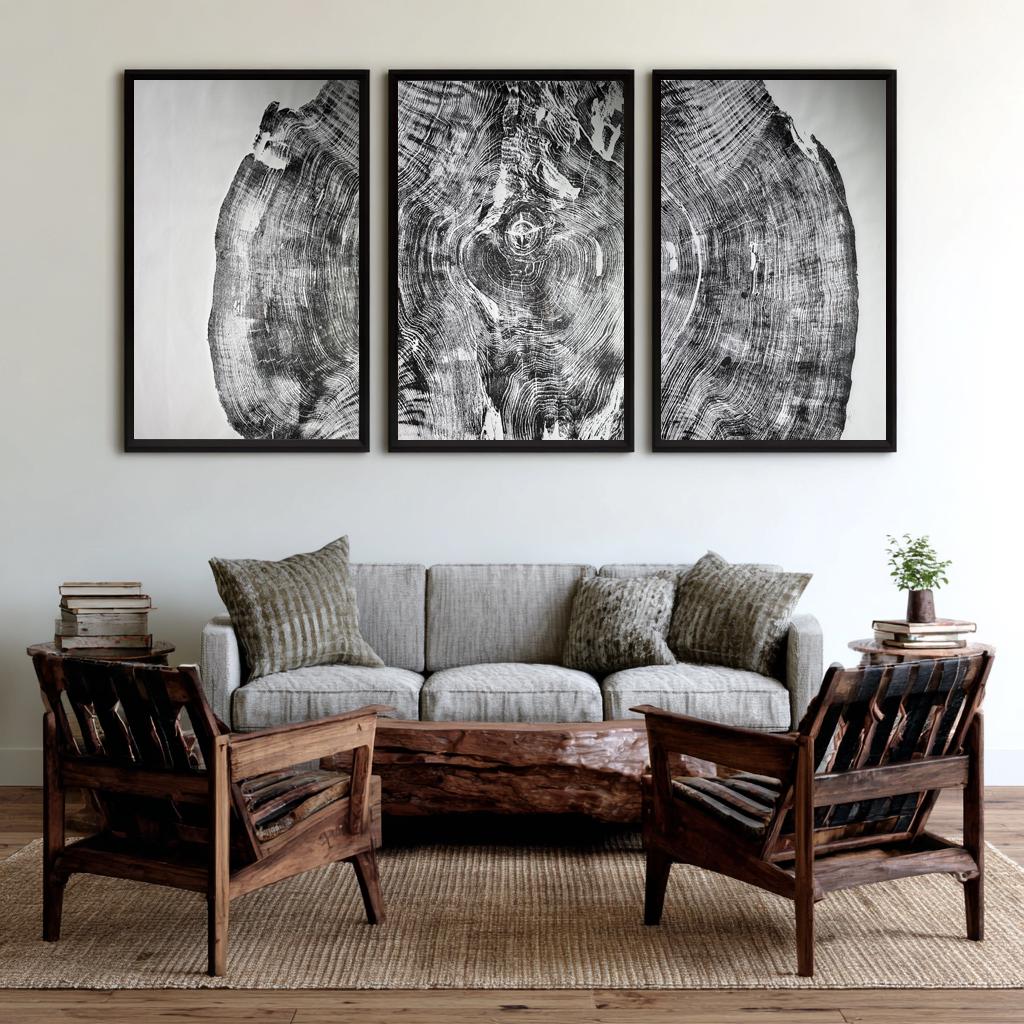 Giant Redwood Art, with its impressive size and unique tree ring patterns, serves as a breathtaking addition to any space. The set features three pieces, each measuring 24x52 inches, which together create a striking focal point for your wall. Not only do these woodcut prints showcase the natural beauty of redwoods, but they also bring warmth and style to your home or office decor.
