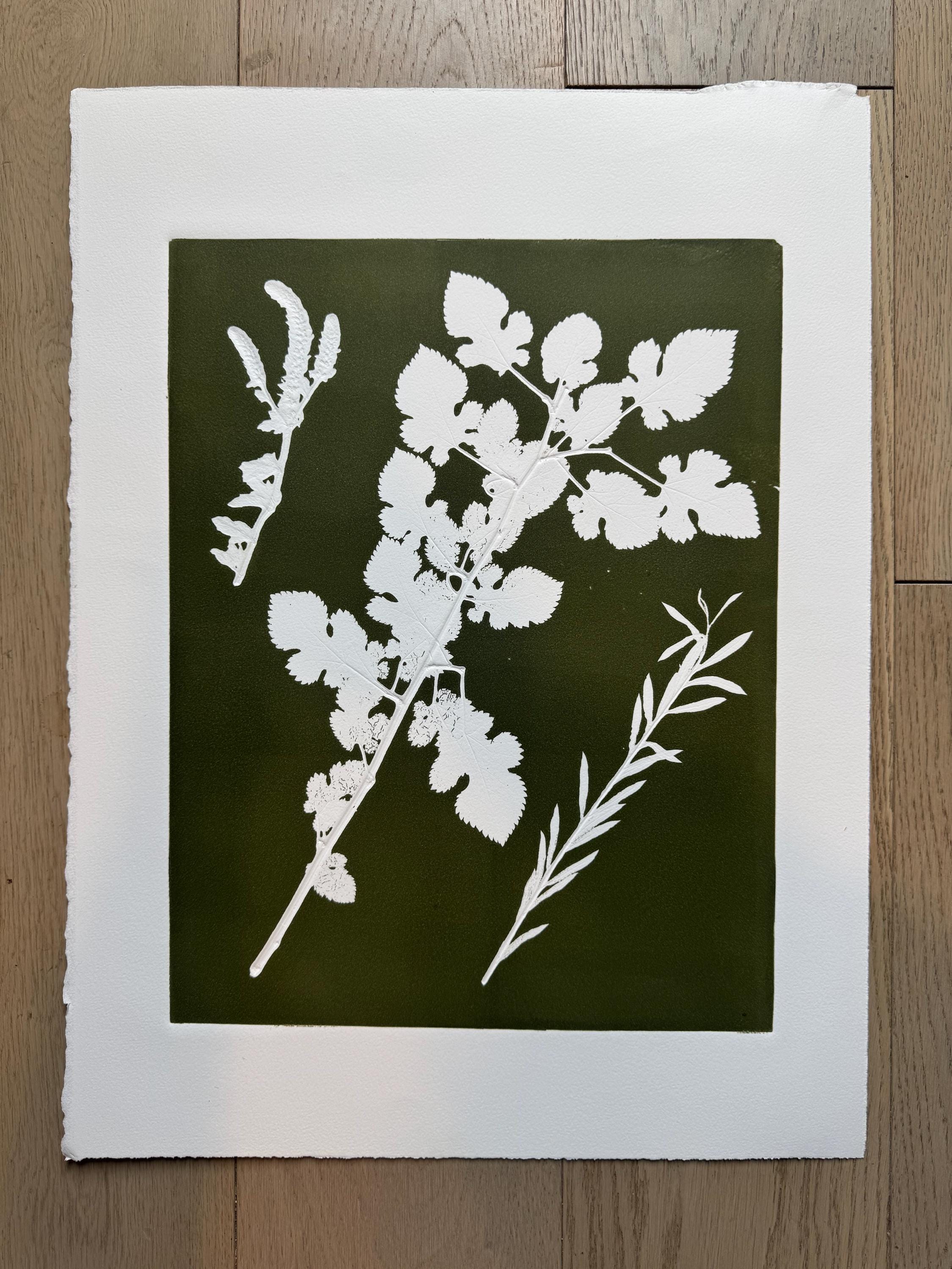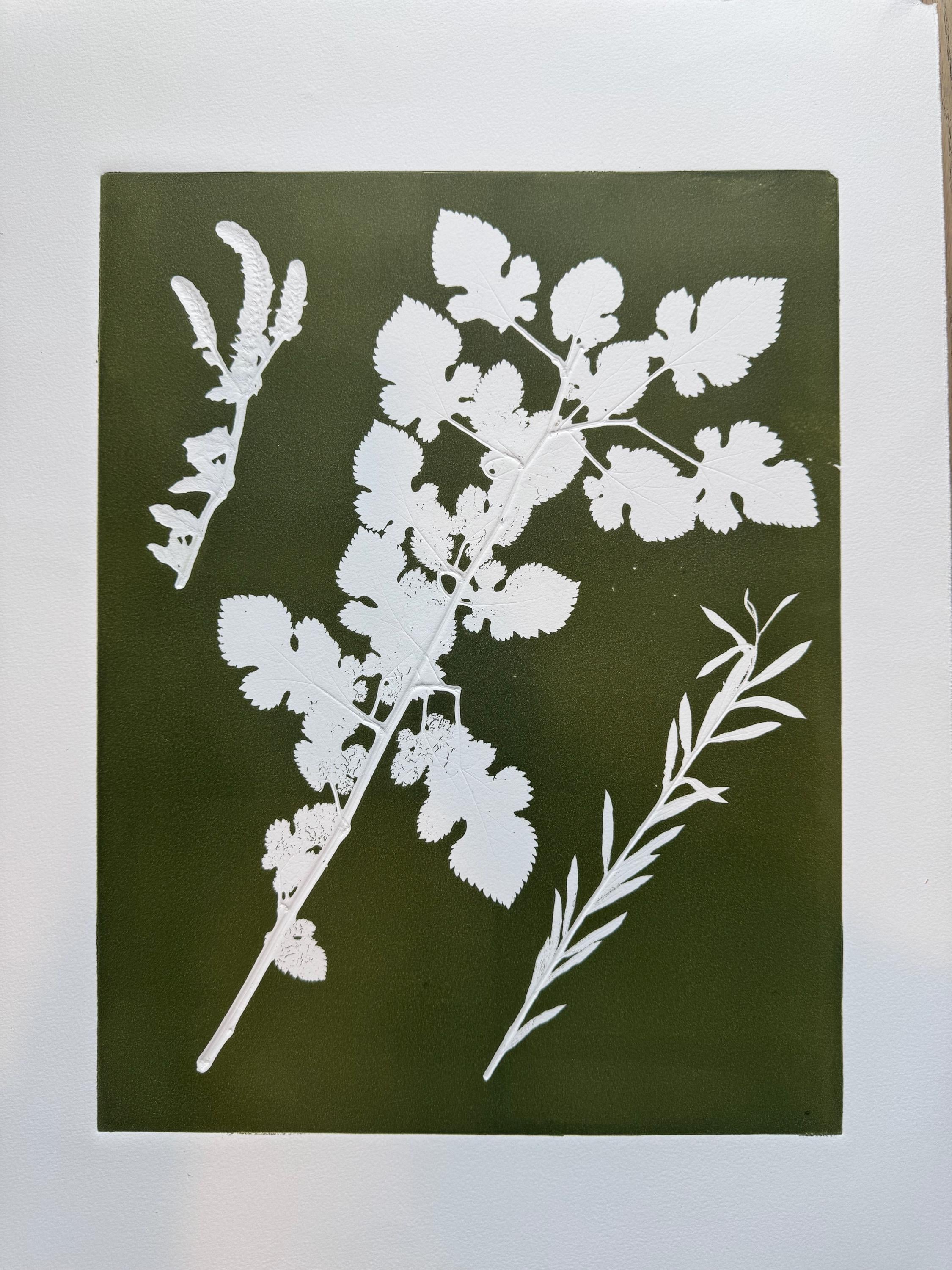 Comparative Study of Botanical Forms, Original Monoprint 18x24 inches, Signed original, one of one
