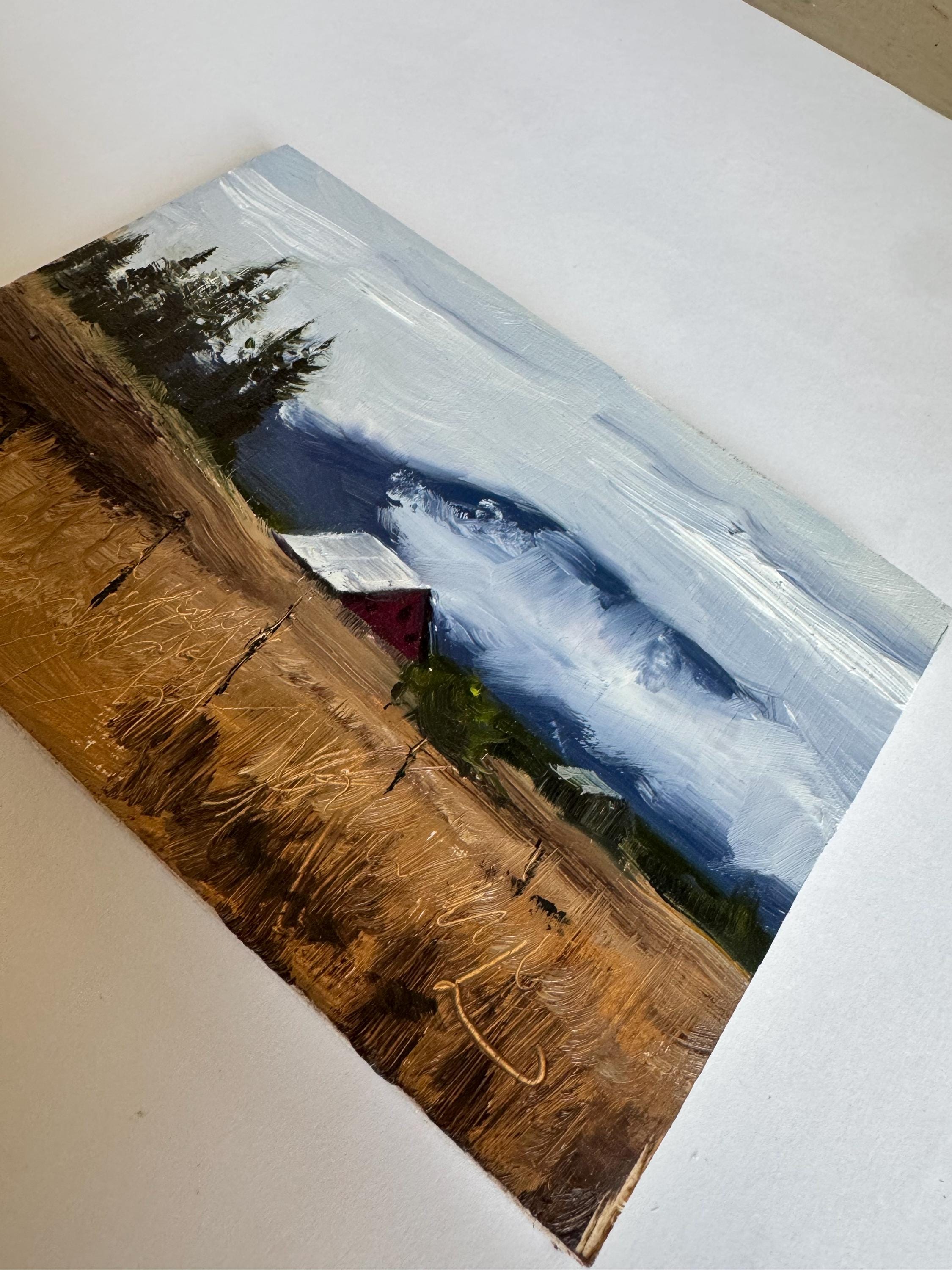 Title: Morning Mist on the Farm, 5x7 original oil painting