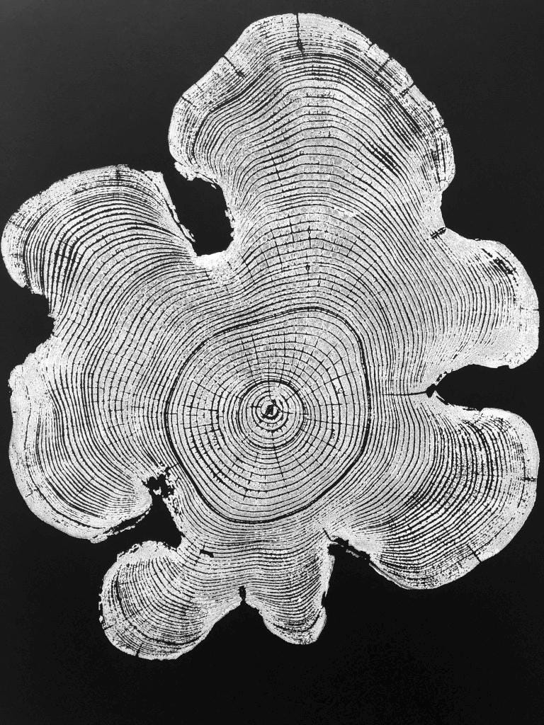 When you buy one of these tree ring prints, you’re getting an actual handmade woodcut print, not something printed from a machine. That’s because I consider each a work of art that is as unique as the tree I make them from. I also don’t believe in cutting down trees to make my art. I travel to meaningful places to find wood from previously fallen trees. In a way, I’m just publishing the story of a place as written by a tree over decades and sometimes hundreds of years. I sign each print because I stand by my work. If you’re not happy with the artwork I will give you a full refund, no questions asked.
