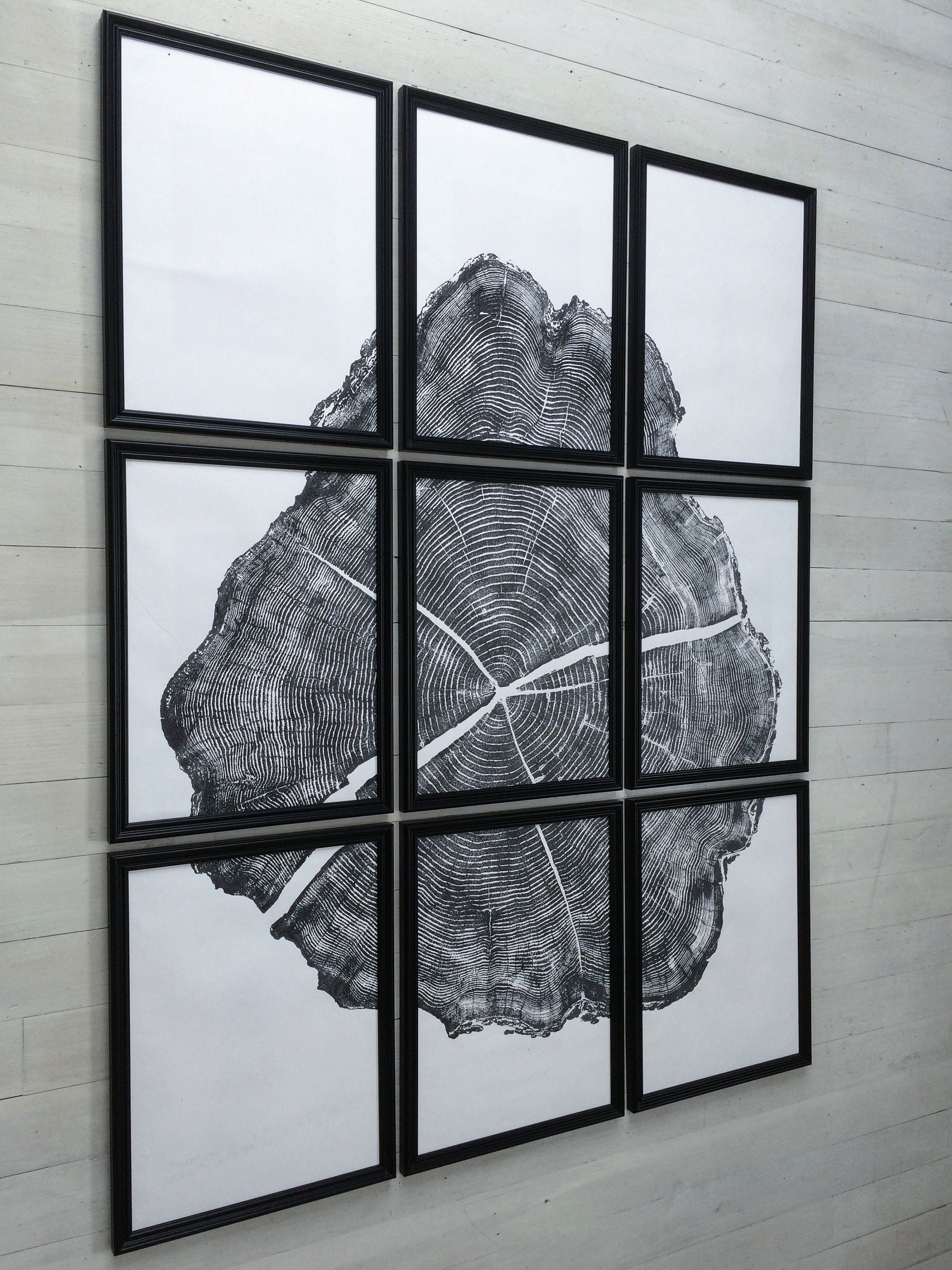 Set of 9 handmade prints. Tree ring print from a huge black locust tree. Hand made tree ring prints from a real tree.